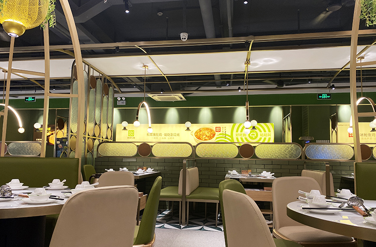 2、用裝飾材料特性表現豬肚雞菜品的核心特征,打造出時尚清新,通透舒適的空間感受。